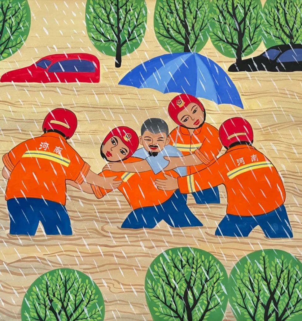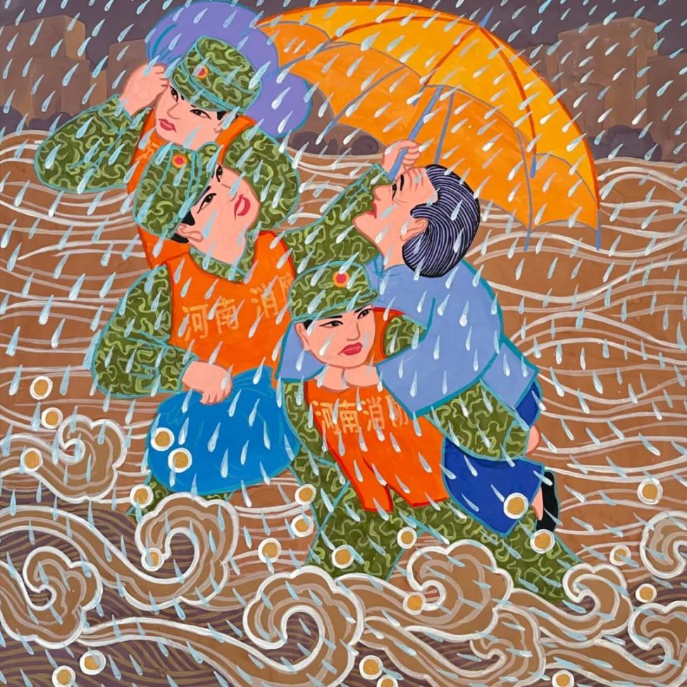 8月3日,河南省漯河市舞阳县舞阳农民画院副院长陈可乐等画家,用手中的画笔定格前线消防指战员与洪魔搏击,与时间赛跑,肩扛使命,勇毅前行,风雨同舟,守护家园的精彩瞬间。