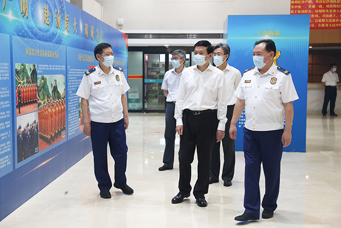调研期间,王祥喜在部消防救援局一楼大厅观看了习近平总书记向国家综合性消防救援队伍授旗致训词展板以及改革转制以来消防被装成果展示,详细了解队伍改革发展情况。王祥喜对消防救援队伍改革转制以来各方面取得的成绩给予充分肯定,指出广大消防救援人员始终奋战在人民群众最需要的地方,随时可能面对极端情况和生死考验,作出了重大牺牲奉献。他代表部党委向全体消防救援人员表示亲切慰问,向长年奋战在消防救援一线的同志们致以崇高敬意。