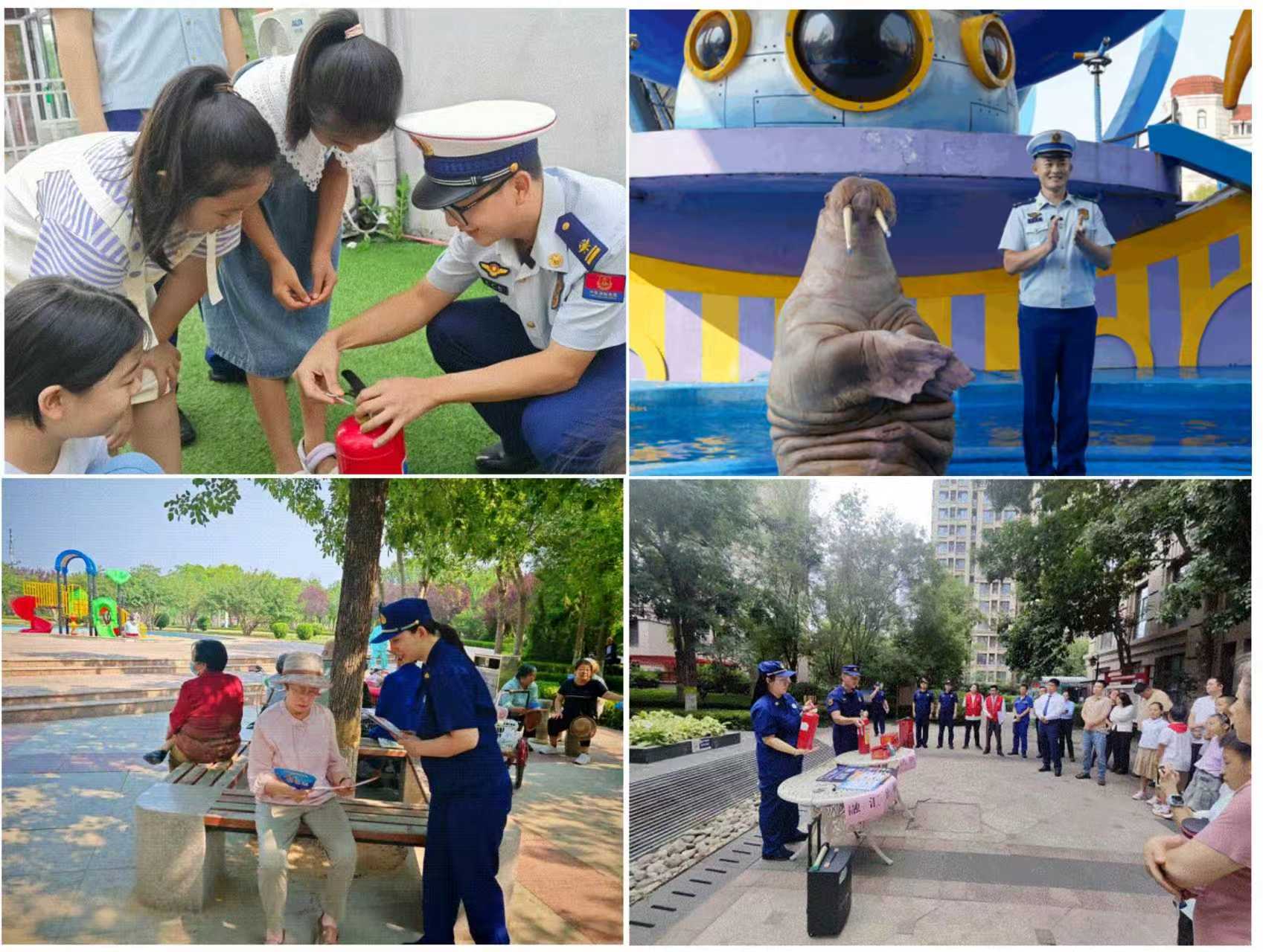 海洋明星助力科普宣传,亲子共筑安全防线。消防部门联合极地海洋公园,围绕暑期家庭安全主题,以“趣味+实战”为理念,亲子群体为靶向目标,开展了一次形式新颖的消防安全宣传活动。消防员在驯养师陪同下与海狮、海豹互动,“火焰蓝”与海洋明星同框亮相,迅速拉近与儿童距离。依托园区开阔水域设置灭火体验区,消防员现场示范灭火器“提、拔、握、压”操作要领,组织家长、儿童分批实操,确保掌握处置初期火灾技能。深入主干道、表演场馆入口、休息区等人流密集区域,面向携童家庭发放《暑期家庭消防安全提示》,重点讲解家庭火灾隐患自查、儿童防溺水、旅行住宿安全等知识。紧扣暑期家庭安全需求,有效压实“家庭安全第一责任人”责任。夯实社会面火灾防控基础,筑牢消防安全“防火墙”。