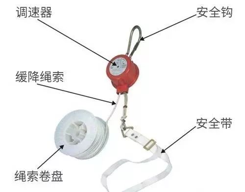 缓降器由挂钩(或吊环)、吊带、绳索及速度控制等组成,是一种可使人沿(随)绳(带)缓慢下降的安全营救装置。它可用专用安装器具安装在建筑物窗口、阳台或楼房平顶等处,也可安装在举高消防车上,营救处于高层建筑物火场上的受难人员。缓降器适用于高层逃生。工作时,通过缓降绳索带动主机内的行星轮减速机构运转与磨擦轮毂内的磨擦块产生磨擦作用,保证使用者安全缓降至地面。