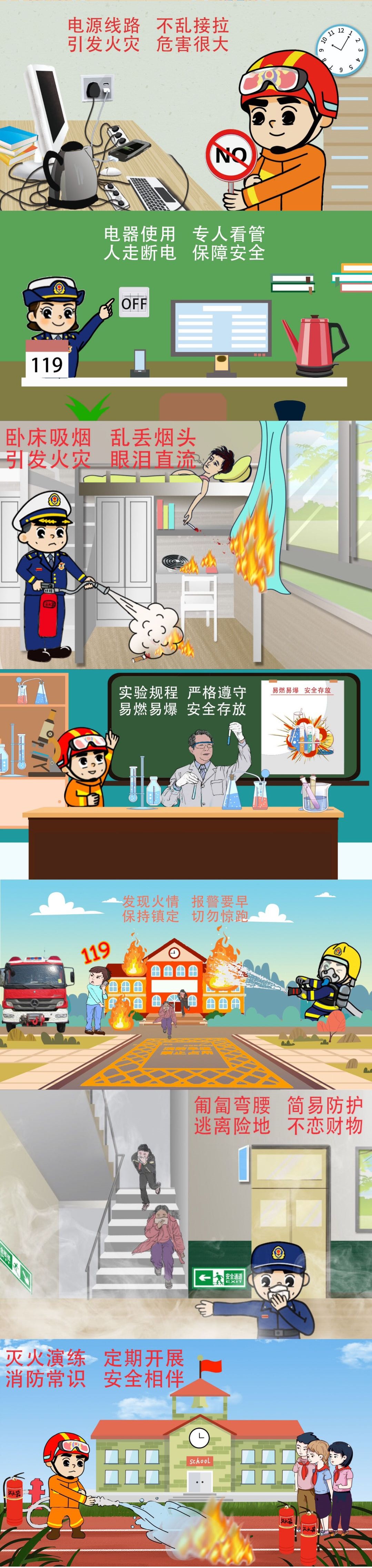 暖春已至,学子将归。随着疫情防控取得阶段性胜利,各级学校即将开学复课。学校教学楼、宿舍楼人员密集,电气、烟头引发火灾时有发生。为切实加强复学期间校园消防安全工作,河北省消防救援总队沧州支队特推出校园防火专题漫画,引导广大师生,复学期间防疫防火两不误。
