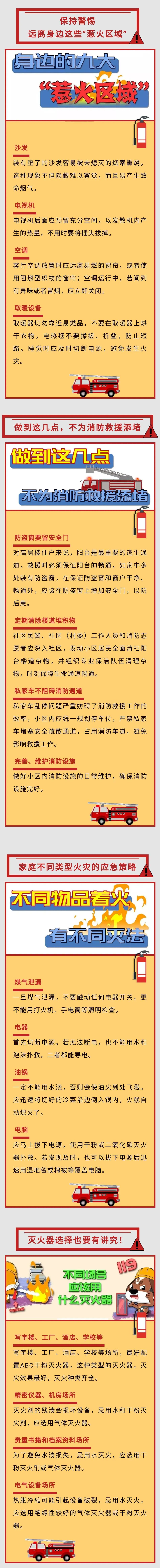 说起“消防安全”,很多人似乎都觉得这是公共场合的问题,自己家应该是“安全的”。可是被认为“安全的”家中,也存在着消防安全隐患,如果不注意,这些隐患就有可能给您和身边亲友带来麻烦甚至灾难。防火于未“燃”,今天就让我们一起来了解一下居家消防安全吧!