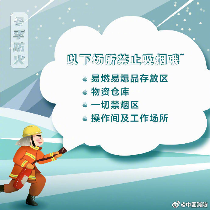 天气寒冷,空气干燥,预防火灾很重要。无论生产还是生活用电、用气、用火现象明显增多,稍不注意就可能引发火灾。防火切莫掉以轻心,这些消防知识记心上。快来戳图了解吧~