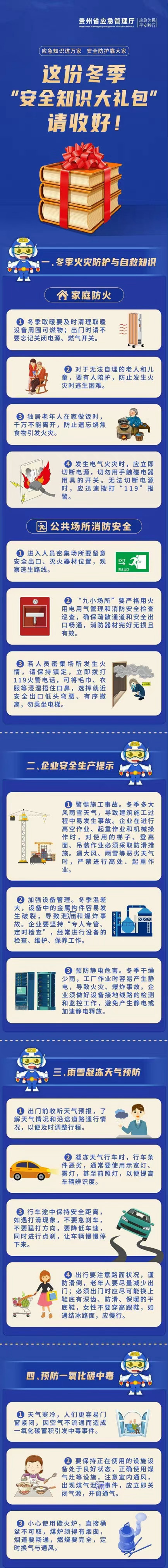 进入冬季,气温不断下降,天气日渐干燥,各类安全隐患也不断增加。因此,我们在日常生活中应该提高安全意识,增强安全观念,防范事故发生。戳下图↓↓这些冬季防火、冬季出行、安全生产等消防安全知识你需要了解!