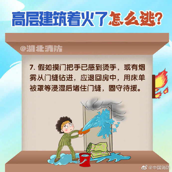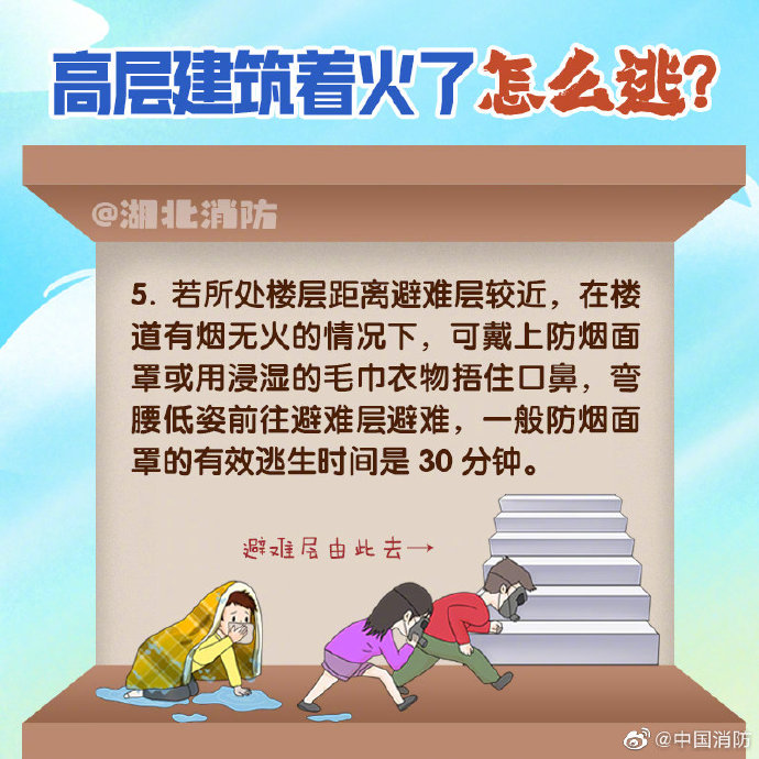 高层建筑楼层多、体量大、建筑结构复杂,人员相对密集,一旦发生火灾,火势蔓延快、人员疏散难、扑救难度大。危险面前,选择正确的逃生方式真的很重要,当不具备逃生条件时,千万别忙碌出门逃生。更多知识,戳图学习~