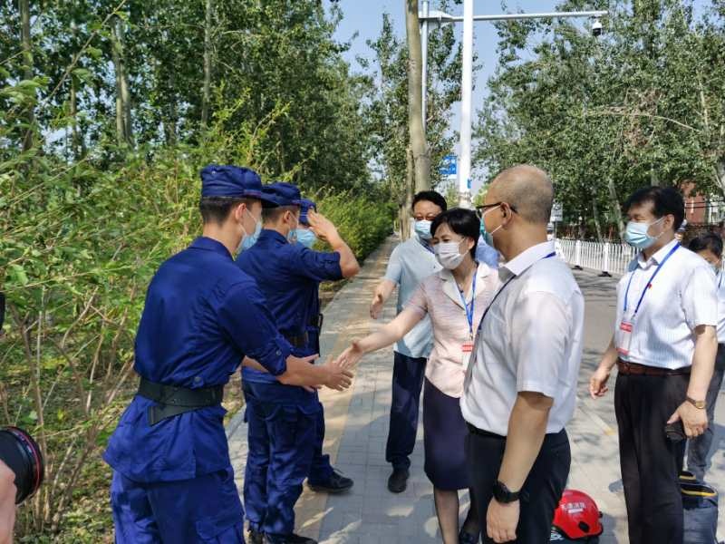 7月8日,西青区副区长高艳在支队领导陪同下,深入高考考点前置备勤点检查指导工作并慰问执勤指战员。