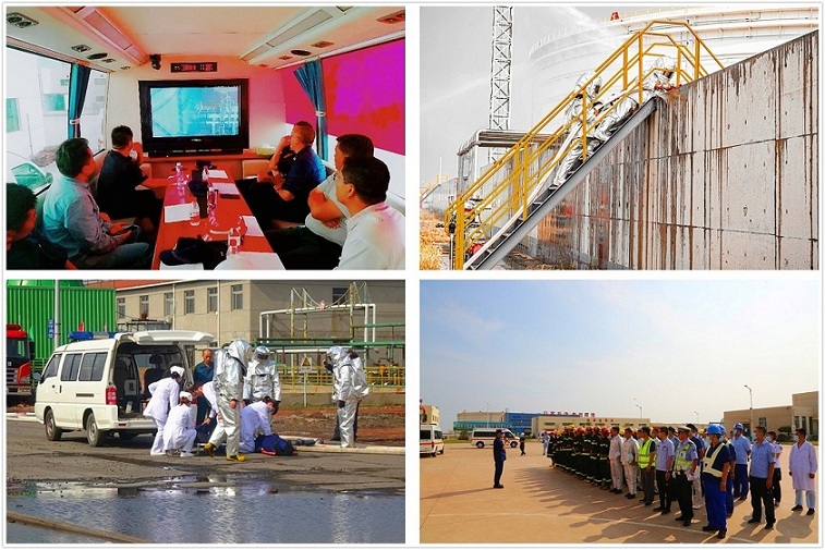 演练活动紧贴总队“一个中心、五个支点”灭火救援协作机制,以东部协作区为依托,以石化专业队为主体,以化工灭火救援编队为单位,设定商储库9号原油储罐因雷击起火,周边多个原油储罐受到火势的严重威胁,各参演力量结合单位灭火救援预案任务分工,严格落实《类型灾害事故初战处置行动规程》,划分侦查警戒单元、灭火冷却单元、举高喷射单元、紧急避险单元、关阀断料单元、扑灭流淌火单元、远程供水单元、通讯保障单元、战勤保障单元等编组,演练过程分区域、分阶段实施全程不间断侦察,会同专家组成员对灾情进行评估,按照毒害性和气象条件划分警戒区域,强化临近储罐的冷却保护,组织攻坚组进行登罐顶灭火、管阀断料和流淌火扑灭,明确紧急避险和全面总攻信号,确保火场供水不间断,加大通信和战勤保障,各参演单元战斗展开迅速、战术措施得当、协同配合有力、战斗作风严谨,圆满完成了演练任务。