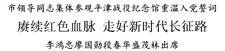 7月6日下午,市委书记李鸿忠,市委副书记、市长廖国勋,市人大常委会主任段春华,市政协主席盛茂林等市领导同志集体参观平津战役纪念馆,深入开展党史学习教育。