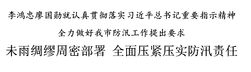 李鸿忠、廖国勋指出,习近平总书记作出的重要指示,充分体现了人民至上、生命至上的执政理念和为民情怀,为我们进一步做好防汛关键期各项工作提供了根本遵循。全市各级各部门要坚决贯彻落实,始终把保障人民群众生命财产安全放在第一位,周密部署,精心安排,确保思想认识到位、组织领导到位、责任落实到位、工作措施到位,牢牢把握工作主动权,打好防汛主动仗。