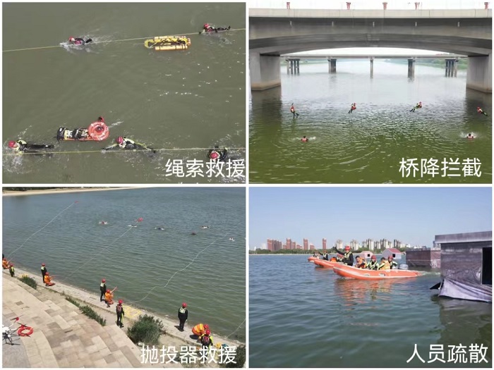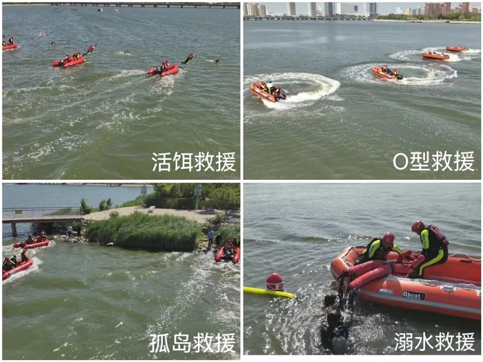 此次演习根据实际设情,聚焦天津汛期汛情、灾情和队伍实际。针对天津市部分地区突降暴雨,流域水位短期内急剧上升,全市多点位突发险情,总队接警后立即启动防汛抢险救援预案,调派水域救援专业队伍和机动力量到场救援,同步启动联勤联动机制协同处置。依托实情设景,围绕汛期“游船翻覆、人员溺水、孤岛围困、落水遇险、物品打捞、车辆涉水、排涝清淤、舟艇救援”8类典型救援场景,设置“一主、两分”3个演练场地,采取“场景模拟与真实响应、实景展现与音视频传输”相结合的方式,全景式展现应急响应和救援救灾行动。立足实战设考,围绕8类场景设置“声呐探测、潜水打捞、T型横渡、桥降拦截、工程机械清淤”等27项防汛救援技术科目,抽调全市20名水域救援专业骨干全程跟队评判,全面检验总队各级防汛力量的应急准备和实战能力。