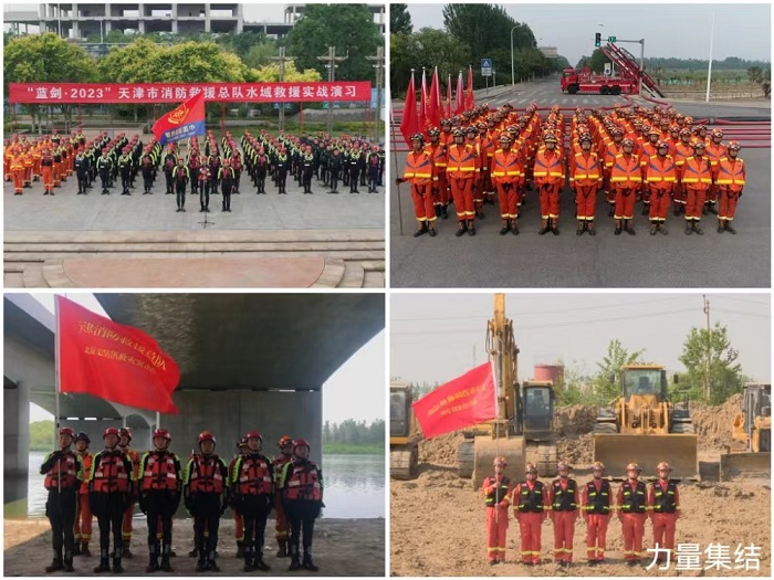 近日,天津市消防救援总队在滨海新区金海湖举行“蓝剑2023”水域救援综合实战演习。演习坚持灾情牵引,立足“灾情最重、施救最难、群众最需要”,突出“实兵实装实演”和“实情实景实考”两大元素,共调集20个支队、450余名指战员、75部执勤车、37艘舟艇、12套(辆)远程供水、龙吸水及工程机械车辆,救援装备5000余件(套),全面检验水域救援专业队伍建设及防汛工作成效。